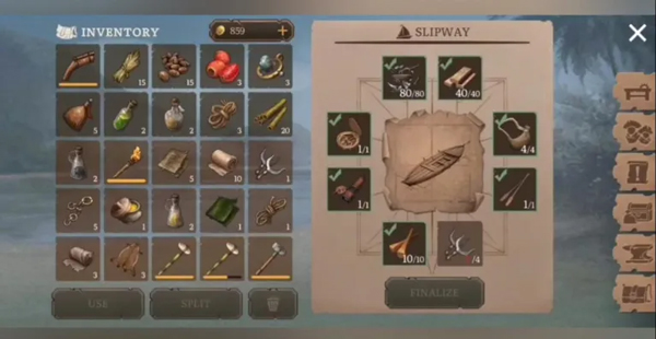 造船雖然簡單。與您家鄉島上避難所旁邊的破船互動,并列出修復它所需的物品。收集材料并將它們拖到它們的插槽以重建您的船。