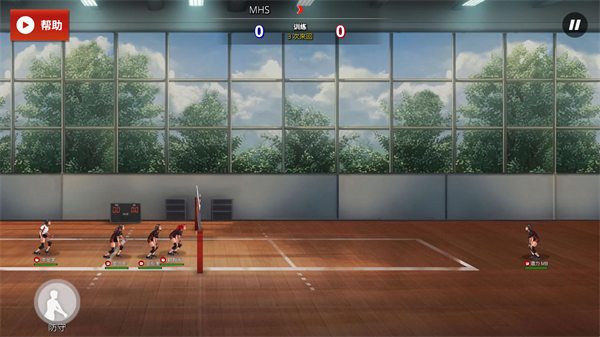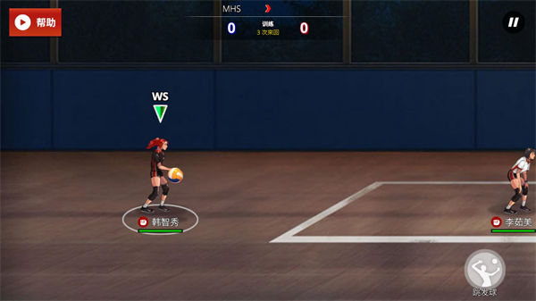 4.進入比賽后點擊右下方的按鈕可以進行發球,發球后可以控制角色攔網和舉球。
