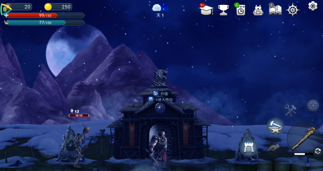 9、白天的時候,玩家可以盡情探索,到晚上會有骷髏兵出現,玩家需要擊敗他們。