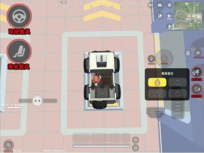 進入載具「載具操作按鈕」消失,出現「載具駕駛按鈕」「離開載具按鈕」和「換座按鈕」(點擊后彈出座位選擇框)