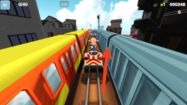2、運用上滑跳躍、下滑滑行及左右移動等操作,精準操控角色靈巧避開火車與鐵軌上布設的各類障礙物與陷阱。