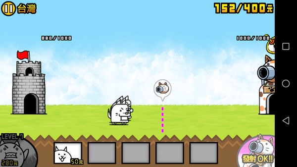 將畫(huà)面左下角的“土豪貓”增值,即可加速累積金錢(qián)的速度并增加戰(zhàn)斗中可持有的金錢(qián)。使用畫(huà)面右下角的“貓咪炮”則是可以一口氣攻擊敵人并推進(jìn)戰(zhàn)線,不過(guò)發(fā)射“貓咪炮”前需要一段時(shí)間充電。