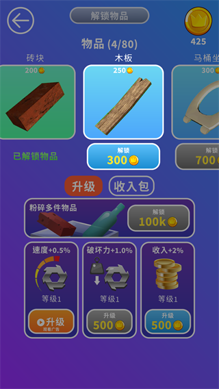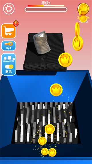 1、利用金幣可以升級粉碎機,提升它的轉速、高度以及垃圾的轉化率。