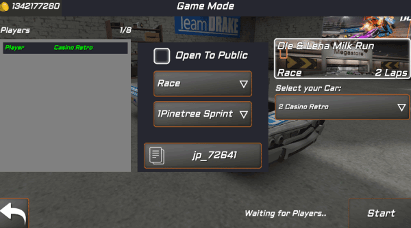 1、下載安裝好游戲后,進入到賽車界面通過點擊“Multiplayer”,創建好房間。