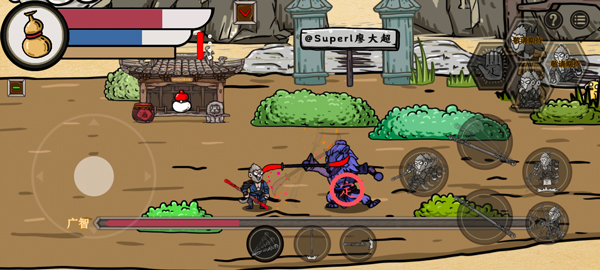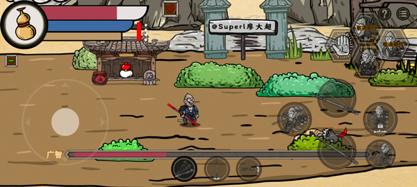 4、正式進入游戲如圖,游戲采用橫版移動操作,玩家需控制嗎嘍與眾多BOSS戰斗;