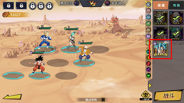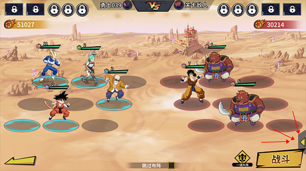 4、戰斗開始前,先點擊右下角安排上陣的英雄;