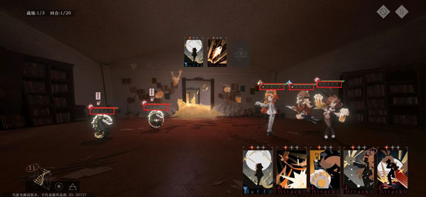 每回合的行動次數視在場人數而定。如圖所示,我方當前場上有三人。所以本回合我們可以行動三次。每次選擇使用或者移動卡牌都需要消耗一點行動點。